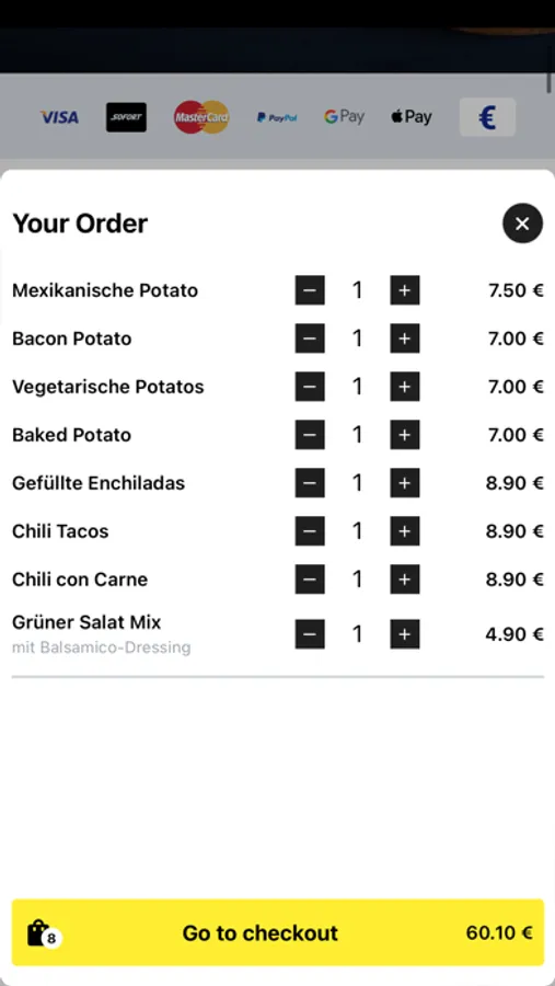 - Durchsuchen Sie die Speisekarte des Restaurants und sehen Sie sich alle anpassbaren Optionen im Voraus an