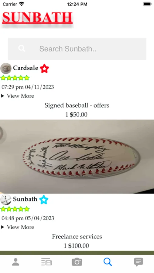 Sunbath marketplace, list any inventory.
