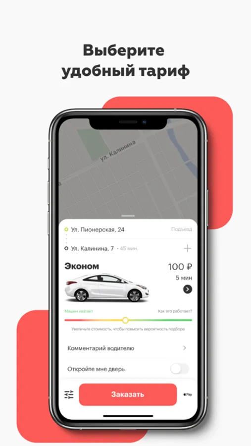 Вы заранее знаете расчетную стоимость поездки и даже можете ее увеличить, если хотите ускорить назначение машины и уехать быстрее.