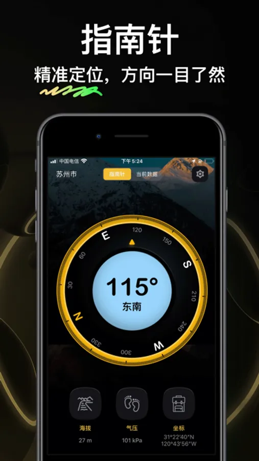 指南针软件,是一款简单实用的方向识别软件。打开该软件,您就可以轻松的识别到您所在的方向。