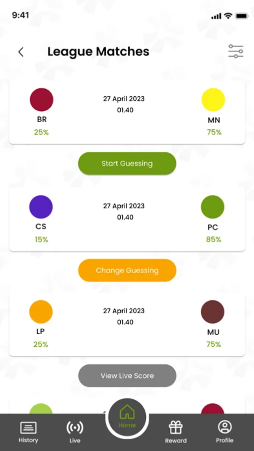 The League Hunters application allows users to simulate in guessing matchs, where the user can guess the winning team in the league, in addition to be able to guess all the league matches before starting the match. Hence, the user gets a set of points based on the game policy and gets a set of prizes.