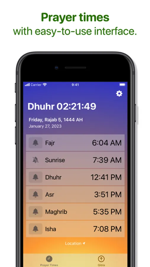 Simple, easy-to-use, and beautiful. Get notified about the prayer time, and find a direction to Qibla. All in one place.