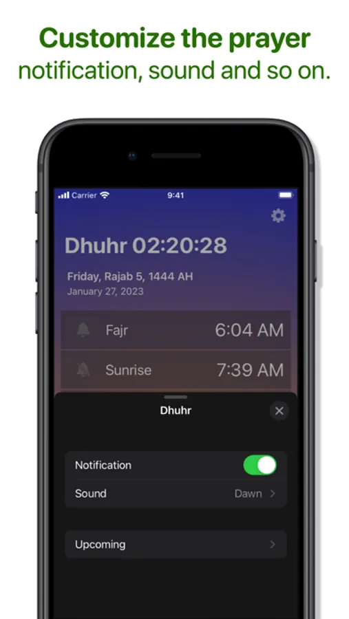 - Prayer notification customization.