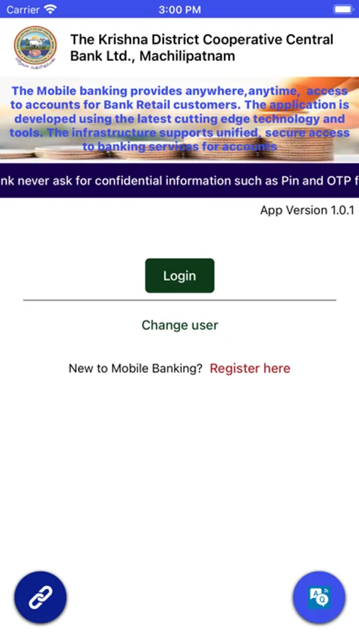 The Krishna District Cooperative Central Bank ltd, Mobile Banking Application is available in different languages like Telugu, English, Hindi etc. Through the mobile banking application, Customers can obtain account balances, account statement, P2P payments, Self-Fund Transfer, Intra Fund Transfer (Transfer money to Krishna DCCB accounts) and Inter Funds Transfers (Transfer Money to other Bank accounts) through NEFT/IMPS, Quick Transfer & Spend Analyser.