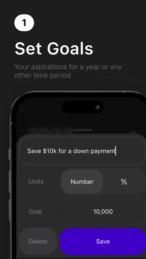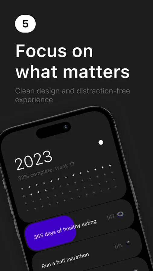 But it's not just about setting goals - it's about crushing them. That's where our progress visualization and motivation tools come in. Celebrate your wins along the way and stay accountable with year progress visualization and reminders. But we know the latter can be annoying, so we've designed our app to send friendly nudges rather than overwhelming you with alerts. You'll receive notifications once a week or once a month, depending on your preference, to check in on your progress and keep you motivated.