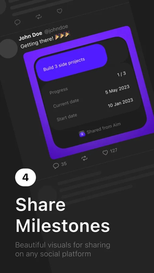We believe that goal-setting and tracking should be straightforward and hassle-free, so we've designed our app with that in mind. Whether you're a seasoned goal-setter or new to the process, making your goals a reality should be enjoyable, motivating, and playful - just like our app.