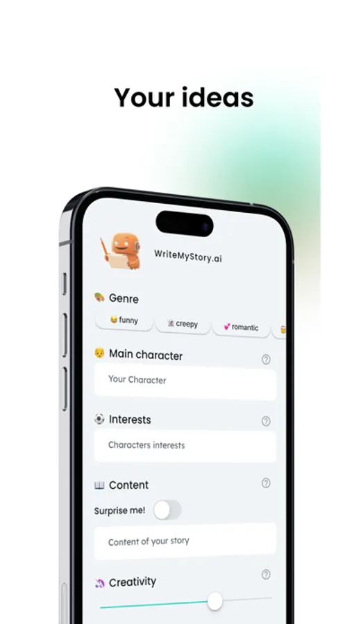 Experience the future of writing with the innovative app - "WriteMyStory"! With the app, you can have your own stories created with the help of artificial intelligence. Simply choose the type of story you want to create and indicate your preferred characters, events, and settings. The artificial intelligence will then create a unique and captivating story that will inspire you. You can also read stories created by other users. Let "WriteMyStory" inspire you and discover the unlimited possibilities of writing with artificial intelligence.