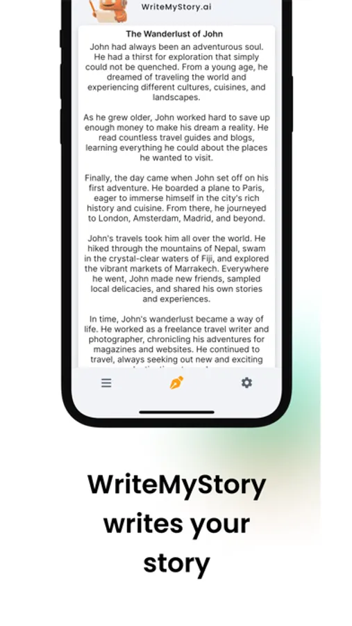 Experience the joy of creation when you create your own stories and unleash your creativity. Be inspired by the variety of stories that "WriteMyStory" can create and discover new horizons.