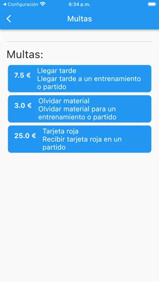 Aplicación para gestionar las multas de equipos deportivos. La aplicación no sirve para realizar pagos, pero sí que permite llevar un registro de las deudas de los jugadores con el equipo.