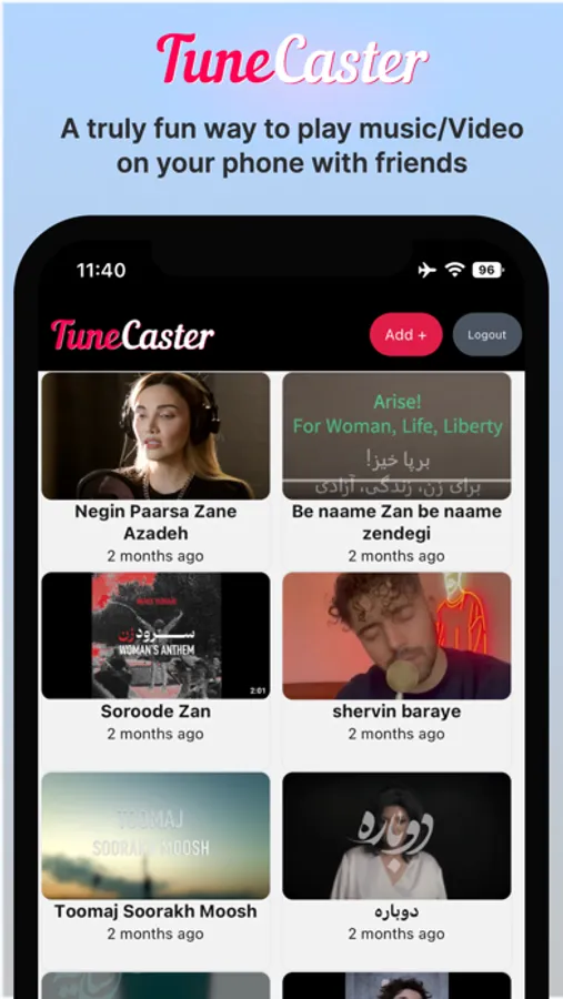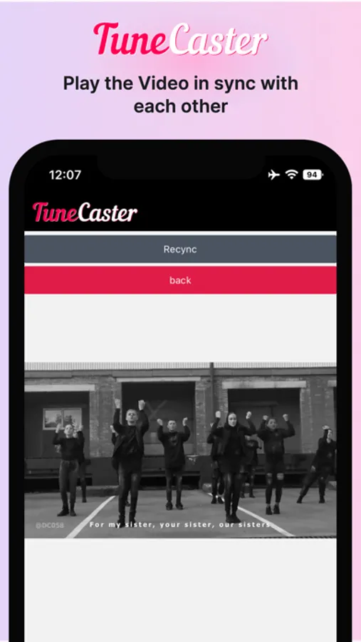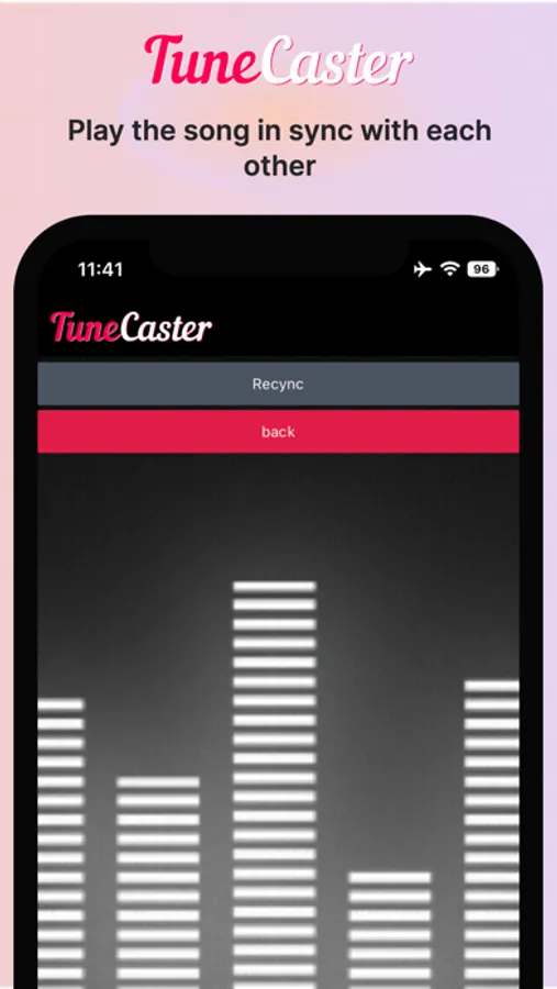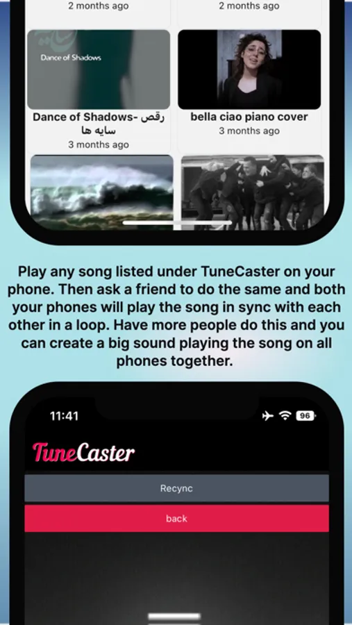 Play any song listed under TuneCaster on your phone. Then ask a friend to do the same and both your phones will play the song in sync with each other in a loop. Have more people do this and you can create a big sound playing the song on all phones together.