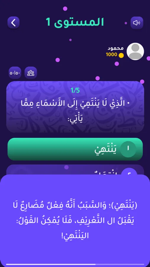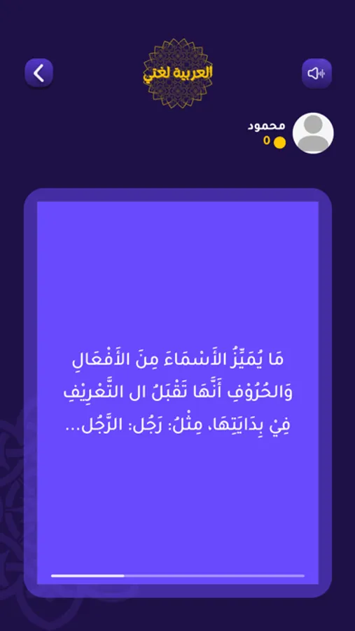 العربية لغتي هو تطبيق لتعليم اللغة العربية من خلال التحديات والمسابقات النحوية.