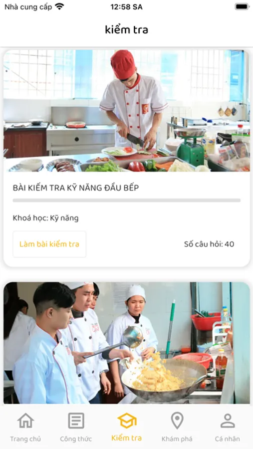 + Test trắc nhiệm kiến thức đầu bếp.