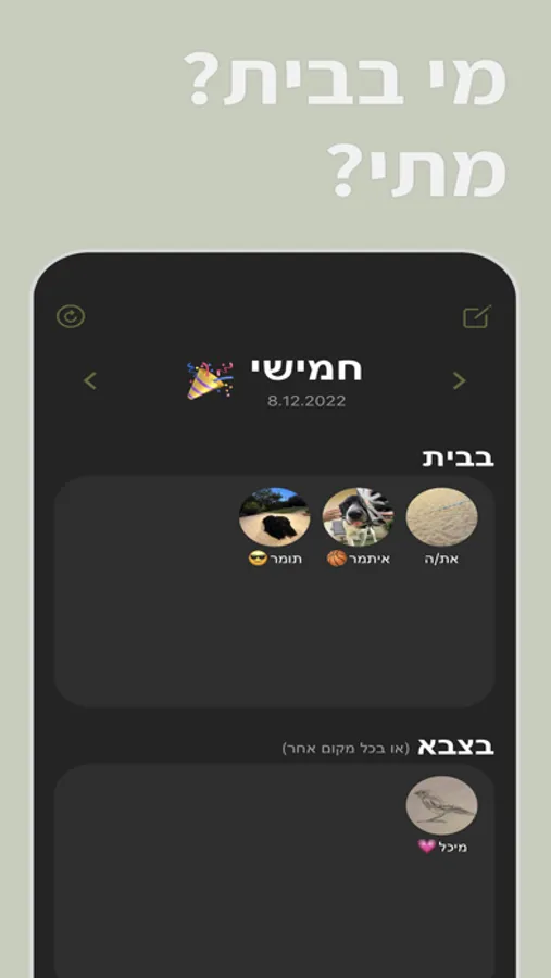 - יוצאים / סוגרים בהפתעה? תמיד אפשר לעדכן יציאות מיוחדות בלוח שנה.