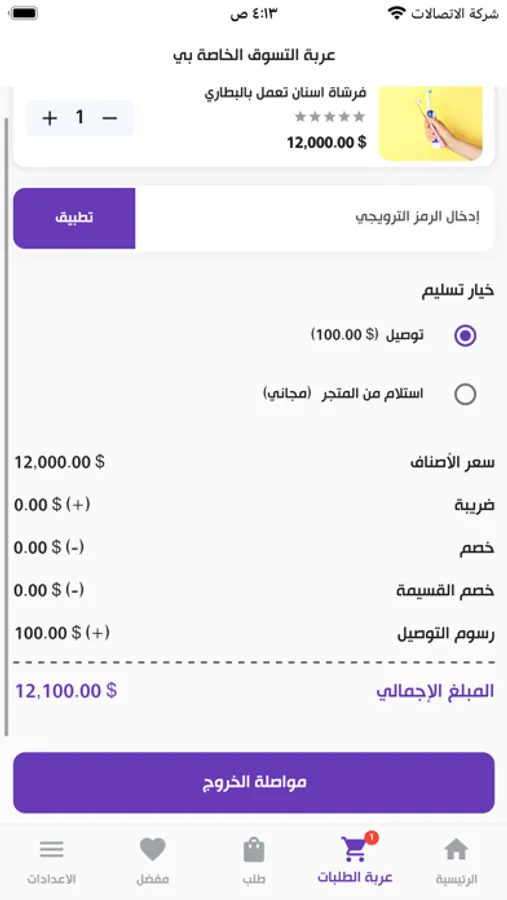 يمكنك الدفع عبر الإنترنت باستخدام البطاقة الإئتمانية أو الدفع نقداً عند التسليم. وبعد تسليم الطلب، يمكنك التحكم في عملية التوصيل من خلال التطبيق ومتابعة طلبك من خلال الإشعارات المرسلة إليك.