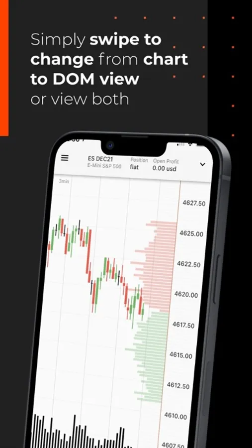 *See the Action as it Happens - Swipe to change from Chart to DOM view, or view both components on the same screen.