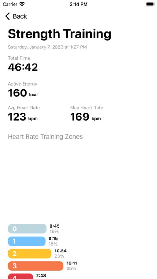 View and analyze how hard you rocked your heart during your workout! Selecio shows you your heart rate progression for your workouts stored in Health. See which heart rate training zone you hit and how much time you spent in each zone