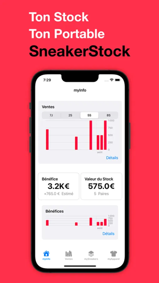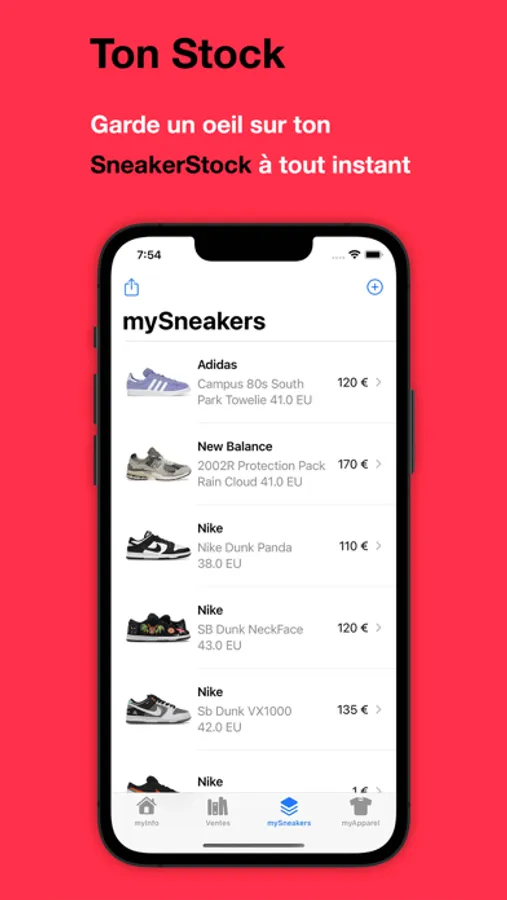 SneakerStock is an inventory management application. This application is intended for the collector and reseller who wishes to have at their disposal the number, the value and the profits of their collection and inventory. It is also possible to see the sales history