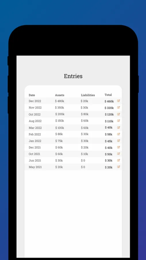 - See a clear visual representation of your net worth on an interactive graph