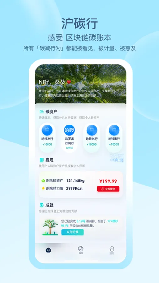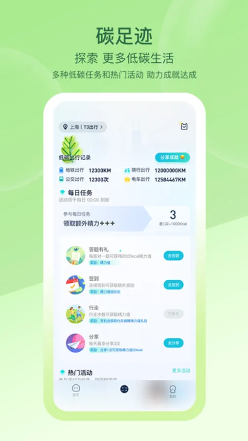 沪碳行-碳普惠平台,一款服务于公众的碳普惠平台,主要功能包含低碳场景任务、践行者排行榜、碳积分兑换等.