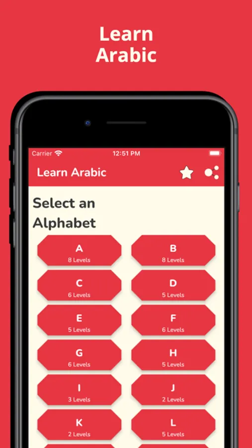Learn Arabic Language from basics to advance level by learning different useful words and phrases. This app provides you to learn Arabic alphabetically from beginner level. You can select any desired alphabet from the list and every alphabet have different levels which contains different essential Arabic words to learn.