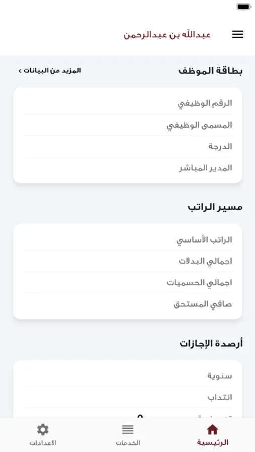 - الاستعلام عن رصيد الاجازات