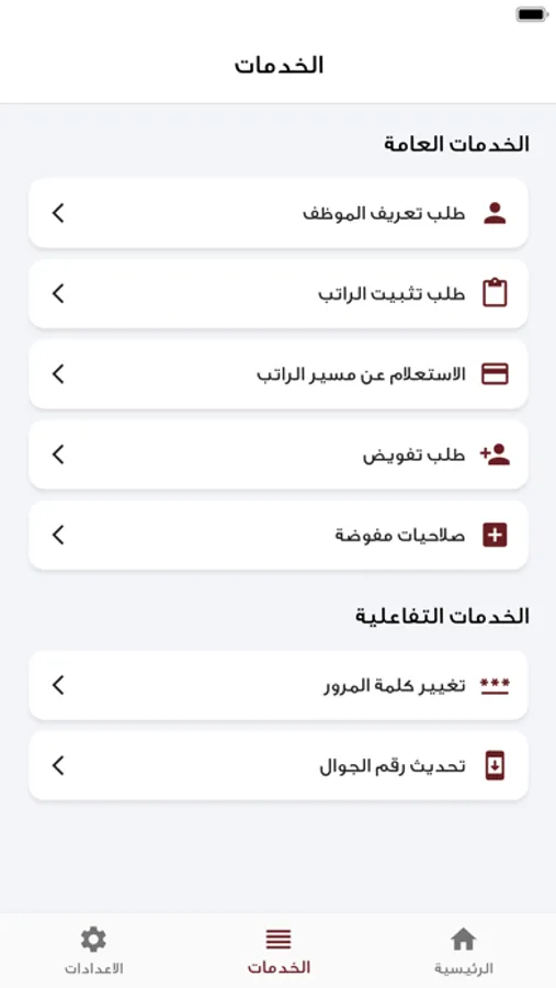 - تطبيق موارد يدعم اللغتين العربية والانجليزية، ويتيح لك الاستفادة من العديد من الخدمات المقدمة عبر التطبيق للموظفين.