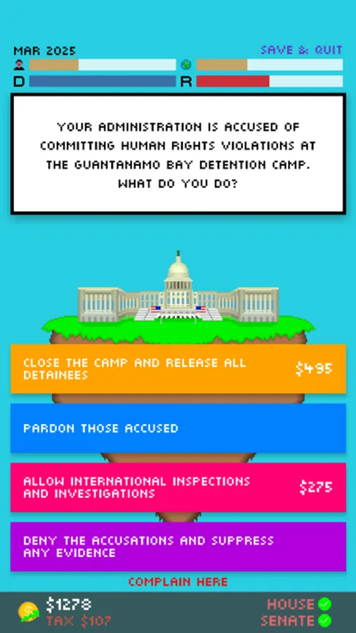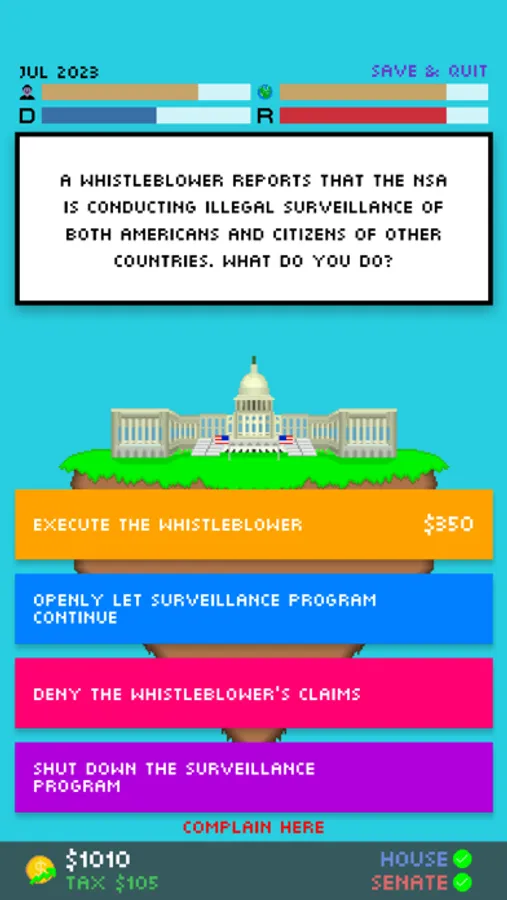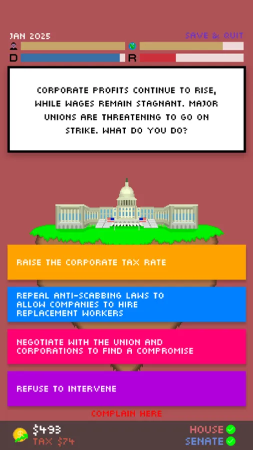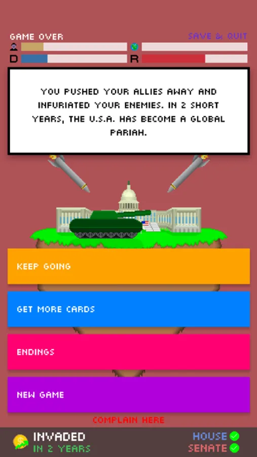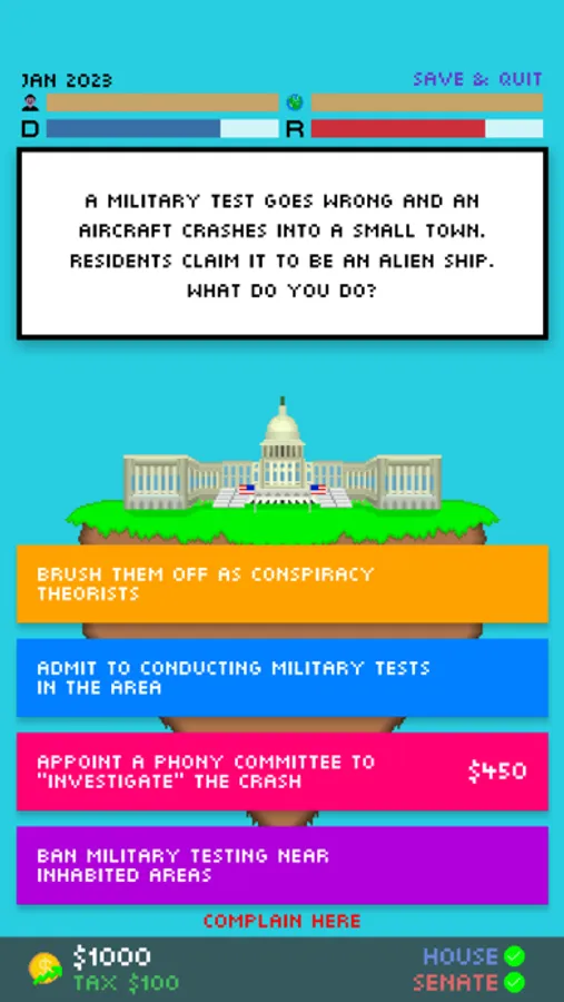 I have taken the feedback received by Impeached: Be The President constructively, and have changed many things to make the gameplay experience better. Enjoy!