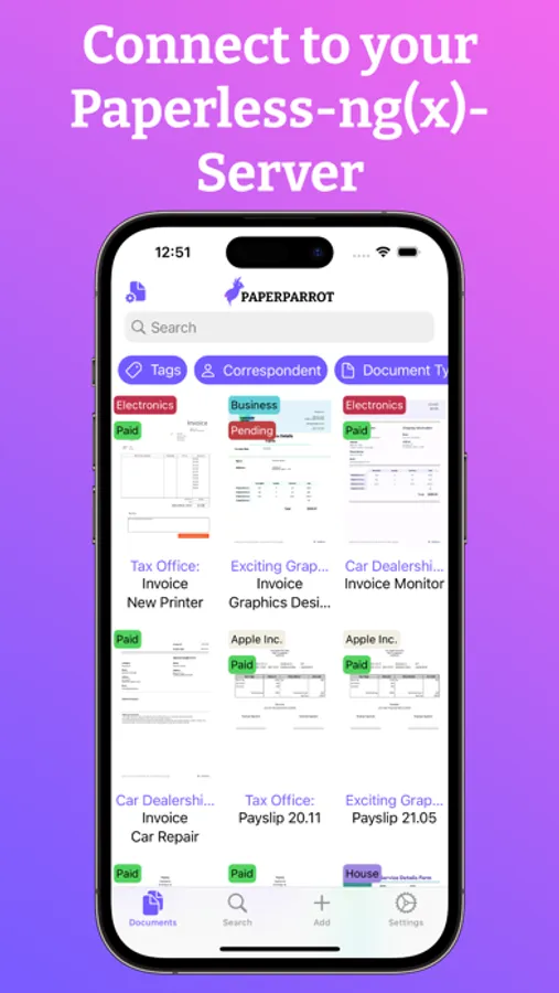 - Synchronize documents from your Paperless-ng(x) server to your device for offline access
