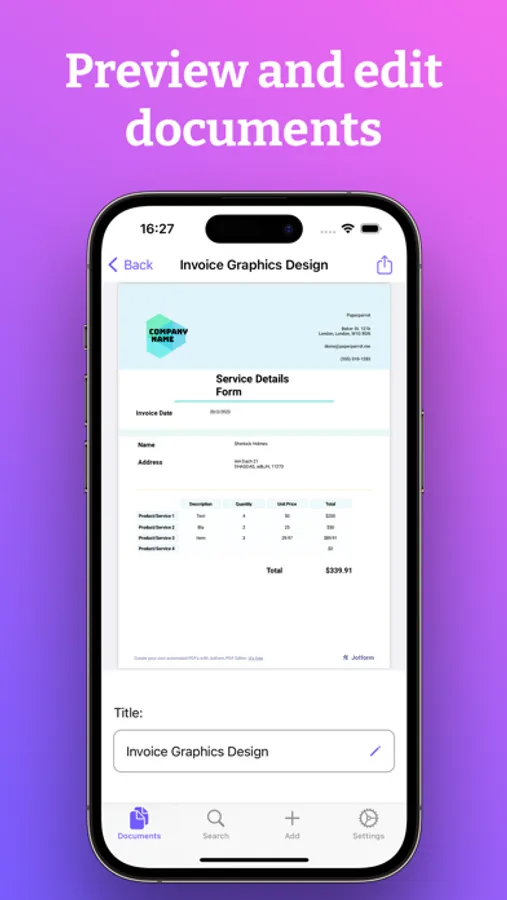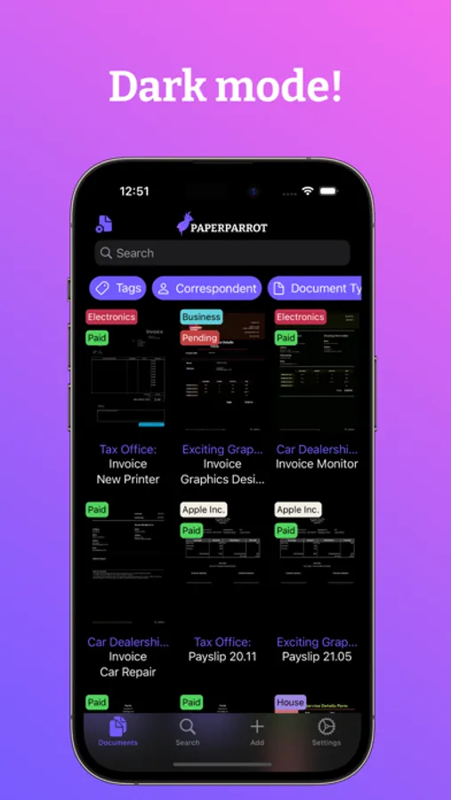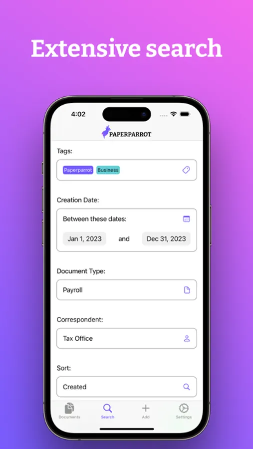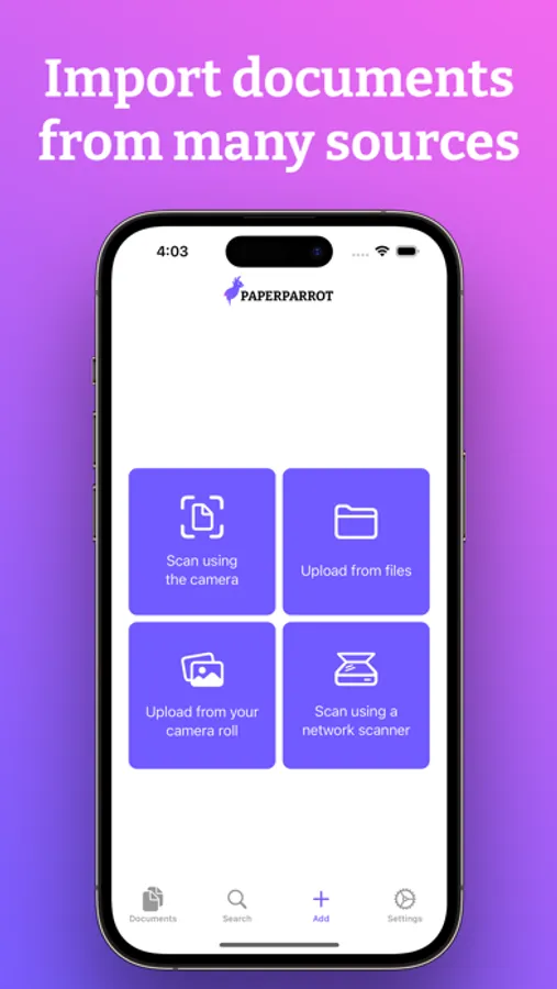- Scan documents from right within Paperparrot using your phones camera or an Airscan-capable network scanner