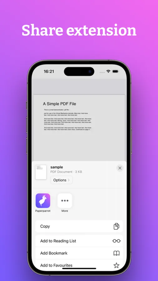 - Share documents to Paperparrot from other apps
