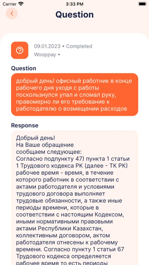 Our application, through a push notification, will keep you informed about all the current changes in the legislation in the Republic of Kazakhstan.