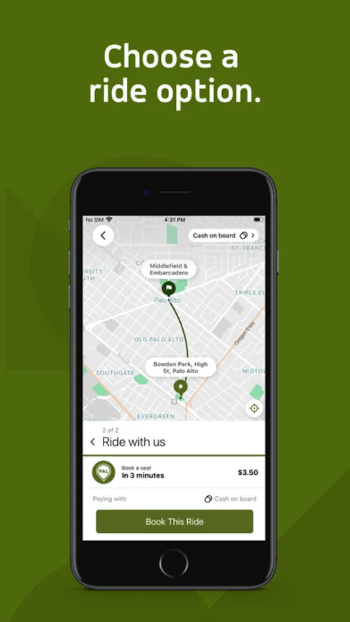 Palo Alto Link is the city’s easy, affordable, and eco-friendly service. We are a rideshare service that comes when you want, where you want — give us your pickup and dropoff addresses, and we’ll provide a few ride options. Choose the ride option that works best for you and get directions to a nearby intersection where a driver will pick you up.