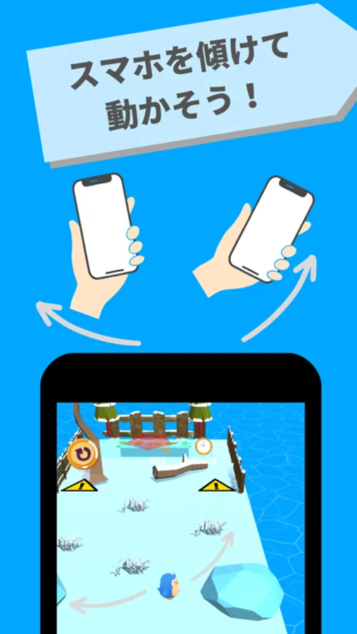 すべりまくる氷の上を障害やじゃまものをよけながらゴールを目指す!