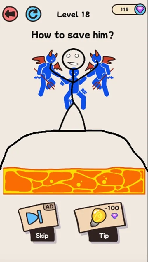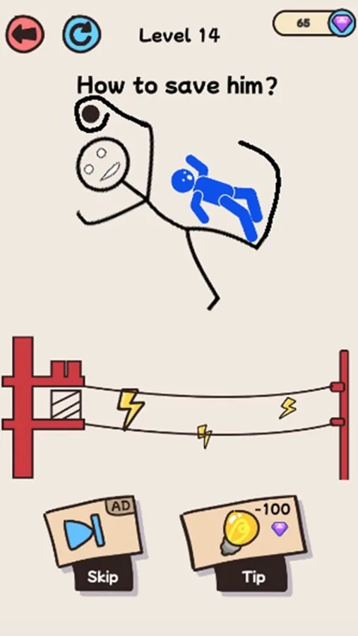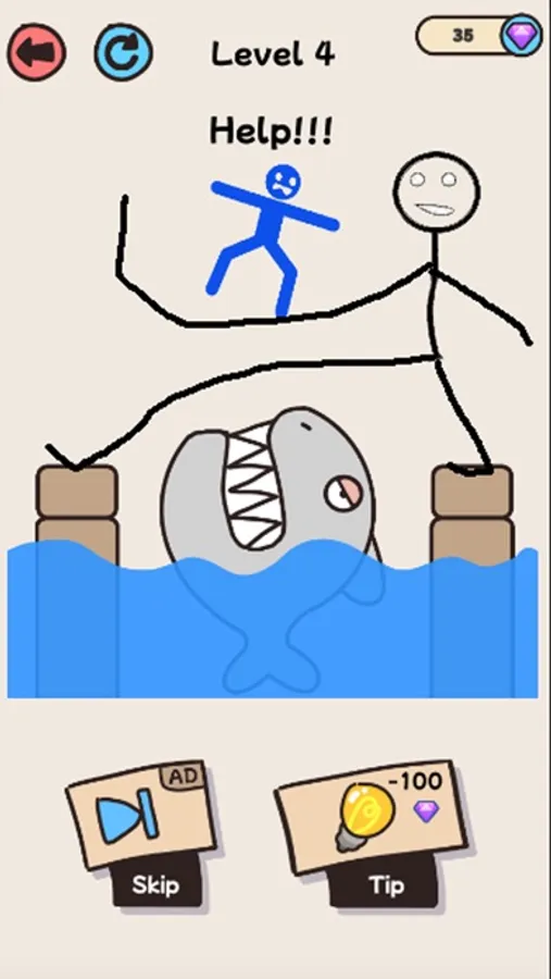 Remember not to draw the line crossing the Stickman you need to protect. Try to draw in the blank space.