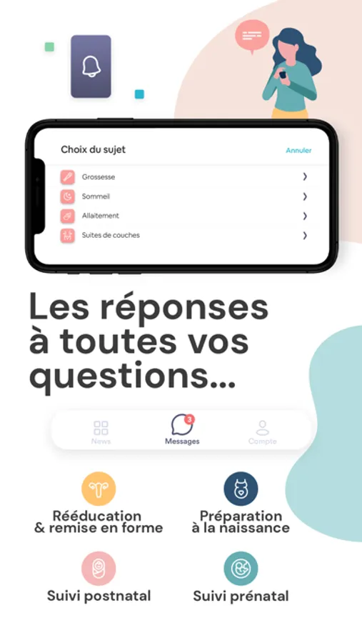 Vous souhaitez commencer l'expérience 9moispourtoi ? Téléchargez notre application et profitez d'une première conversation gratuite avec nos sages-femmes.