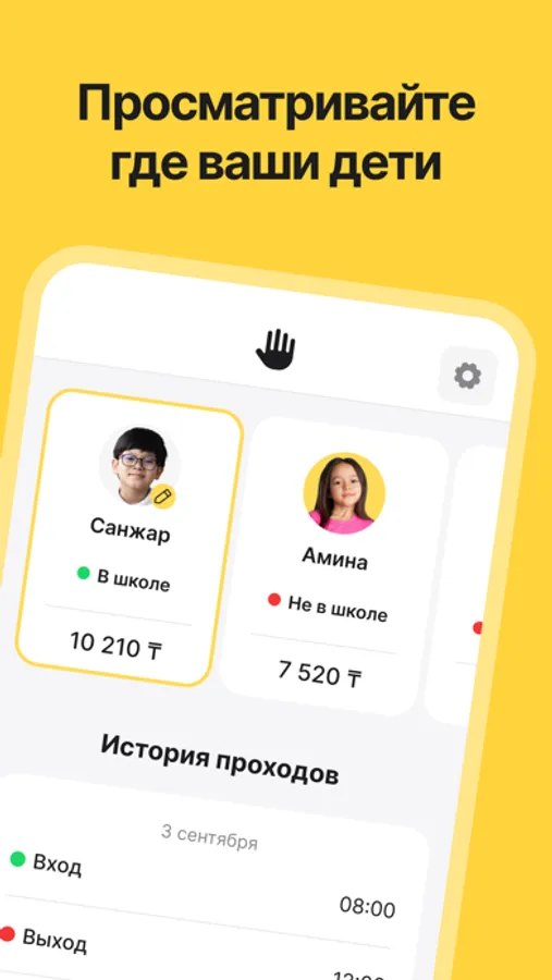 Родитель получает уведомления о входе и выходе ребенка из школы.