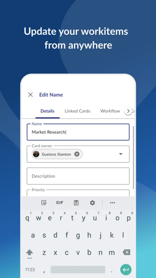 Update details such as the priority, card owner, start date, end date, due date, etc. for the workitems