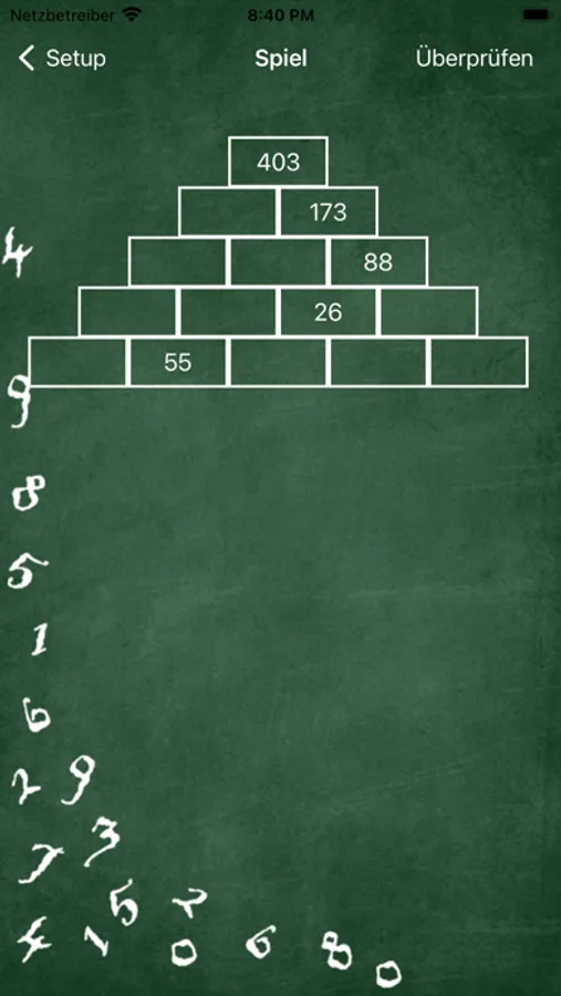 Die einzige Regel ist, das ein Block die Summe der direkt darunterliegenden Blöcke sein muss. Unser Tipp ist, dass du dich mit dem Pascal-Dreieck auseinandersetzt. Je nach Schwierigkeitsgrad des Rätsel bekommst du mehr oder weniger Punkte und kannst dich so in der Bestenliste nach vorne arbeiten.