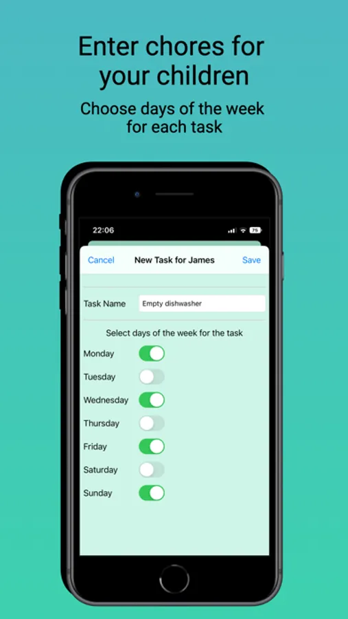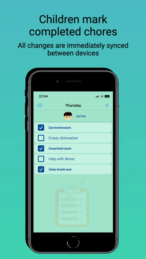 Install the app on your Apple device and, if available, on your kid's iPhone or iPad. It takes only seconds to create a free account (in order to synchronise tasks between devices). No account is required for children. After entering tasks on your device and they will immediately appear on the children's phones and tablets. Kids cannot edit or delete tasks, only mark them as done.