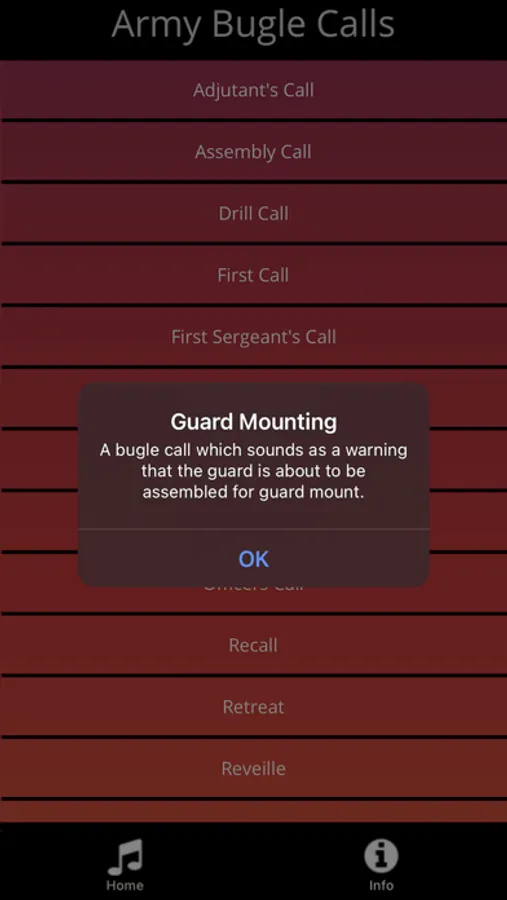 - Info popups detailing what each bugle call is used to signal.