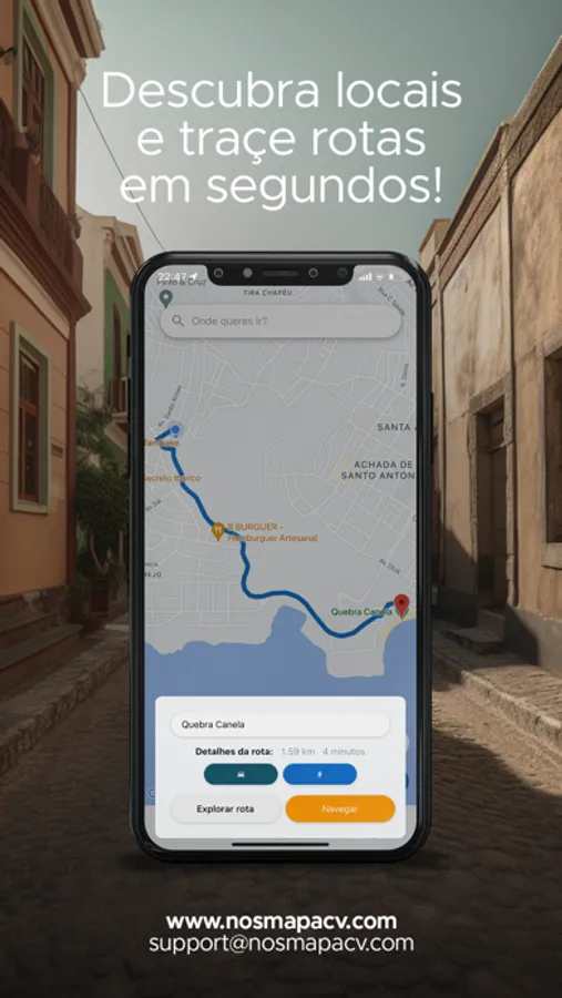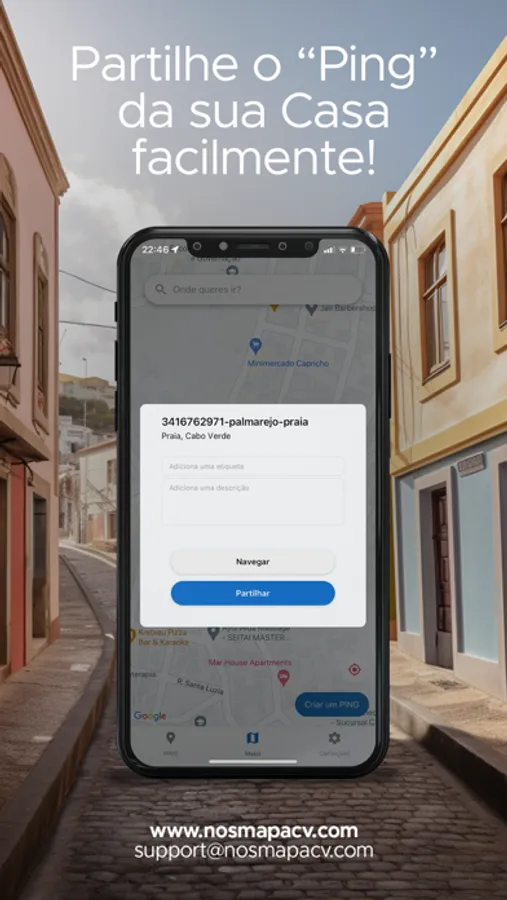 Utilize Nos Mapa para criar o teu endereco e partilhar a sua localizacao com seus amigos e tornar o processo de navegacao mais facil
