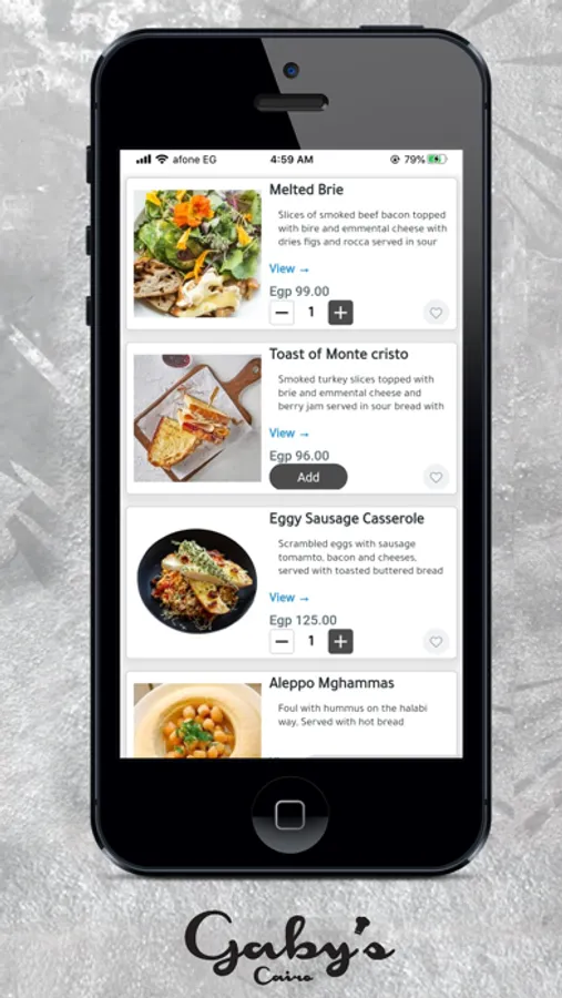Gaby's app is a creative food application, you could order your favorite meals from it and win rewards points. You could download the app from app store and enjoy with ordering our meals.