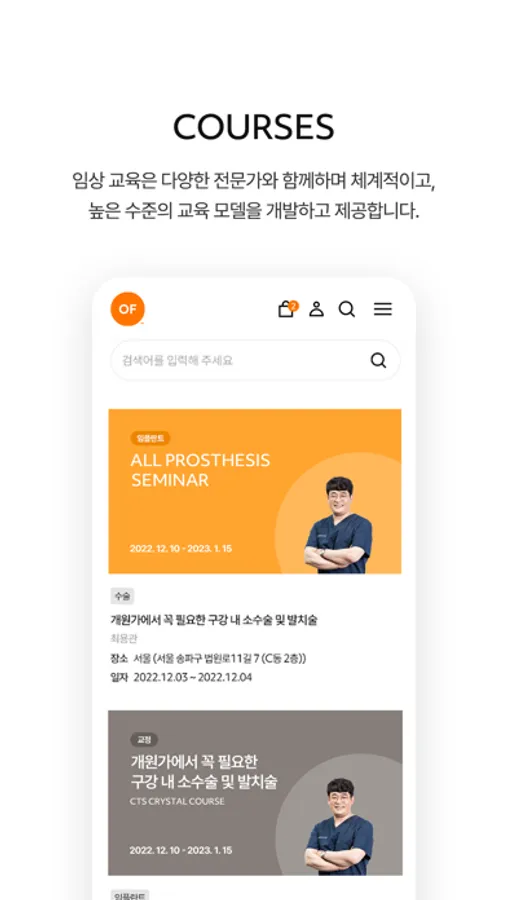 OF의 임상 교육은 다양한 경험을 가진 임상의 및 학술 단체와 함께하며, 체계적이고 높은 수준의 교육 모델을 개발하고 제공합니다. 전 세계의 치과의사가 OF의 오프라인 임상 교육을 경험하고 있습니다.