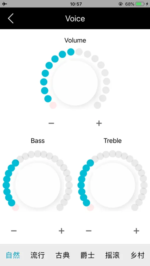 3、EQ:Equalizer.Volume,Bass,Treble and eq type select.