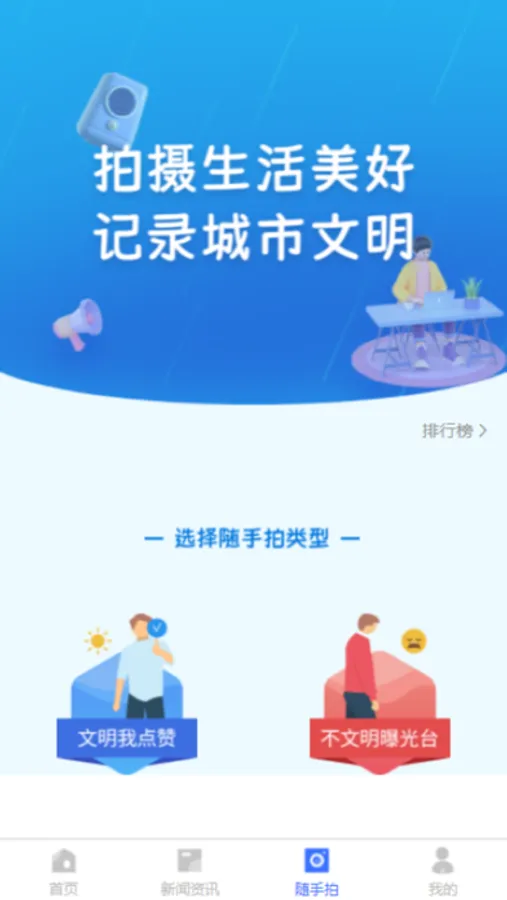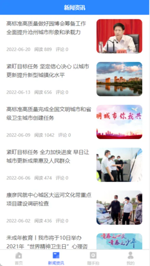 用户进入app可以浏览平台的信息,包括沧州文明办发布的本地新闻、动态、以及便民发布的信息,用户可以通过手机号注册登录登录进去可以查看平台的所有信息,可以发起随手拍,发布城市正能量或者负能量的事。