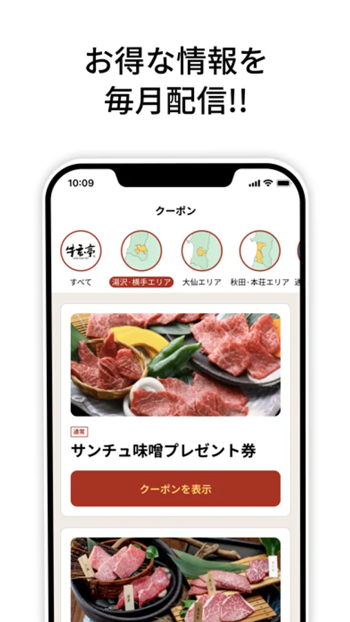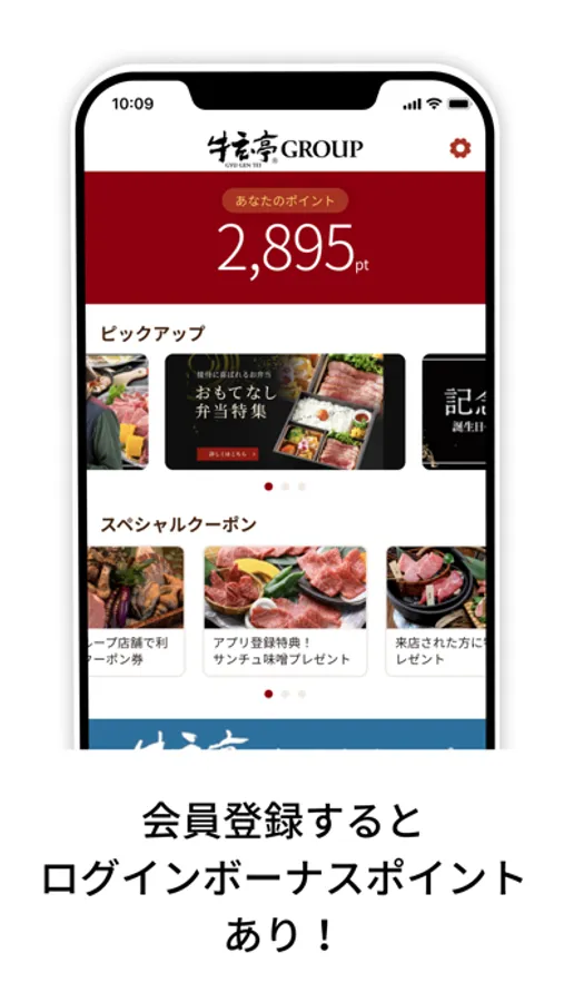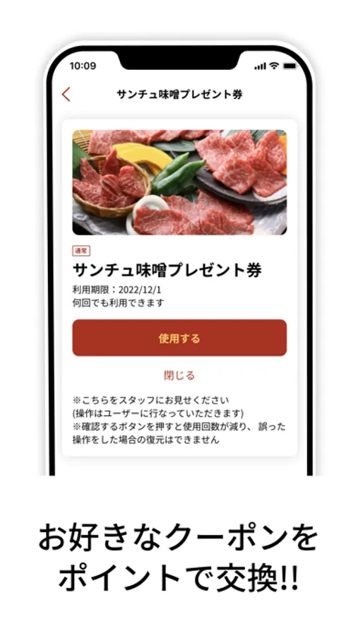 貯まったポイントをクーポンに交換し牛玄亭グループの店舗で利用することができます。