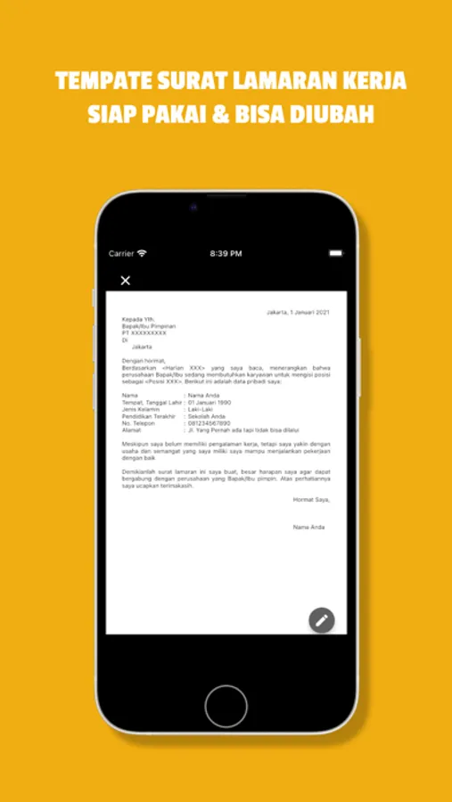 - Tersedia template surat lamaran kerja dalam bahasa Indonesia & Inggris