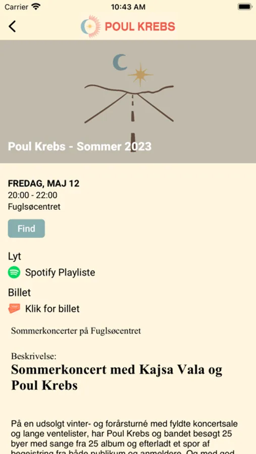Historier fra lokale perler, hverdagens trummerum, sporadiske observationer, sindets afkroge, livets relationer. Historier fra Poul Krebs sætter sig i hjertekulen, og det har de gjort siden 70’erne. Krebs er en af poprocks bedste iagttagere – en evne som tager form i hans musik og hans ubetingede nærvær på scenen.