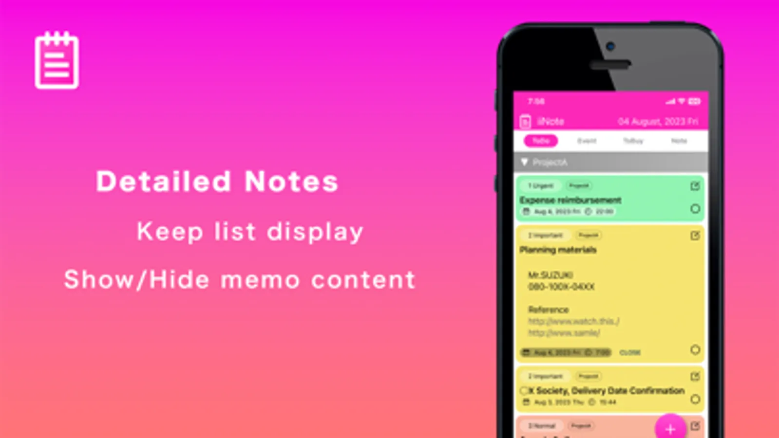 iiNote is a Todo, Scheduler, Shopping List, Notepad, Sticky Notes, Memorandum, Note App that combines handwritten and digital features.