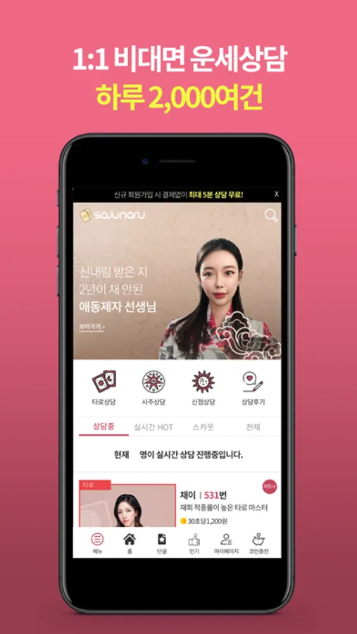 언제, 어디서나 대한민국 최고의 타로, 사주, 신점의 전문상담사들에게 1:1 맞춤 전화상담을 받아보세요.